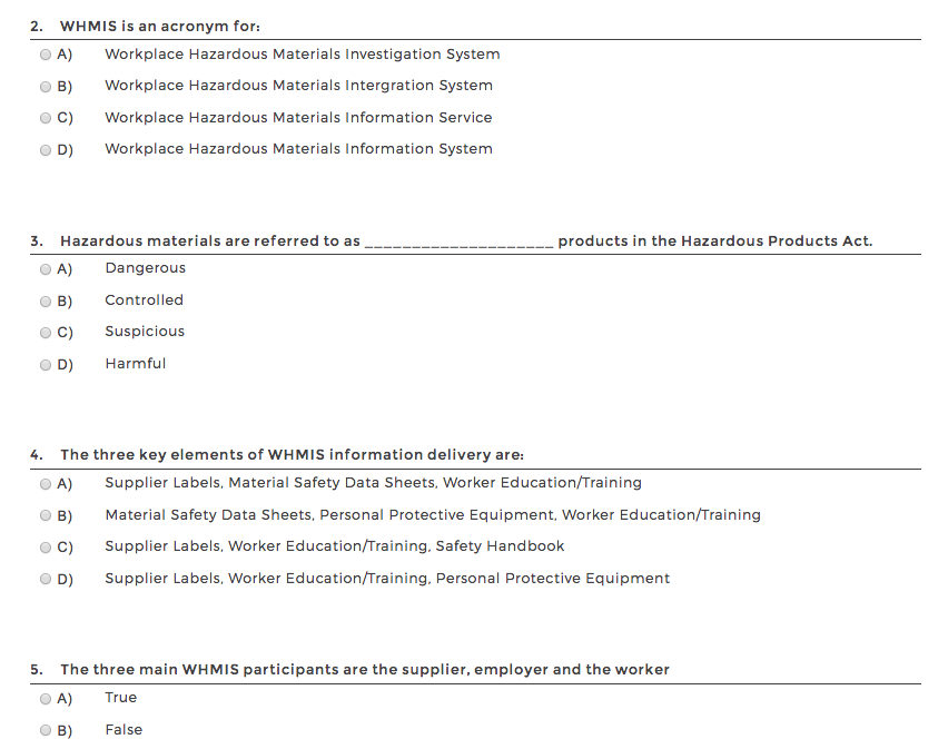 Solved 2 Whmis Is An Acronym For Oa Workplace Hazardous Chegg Com